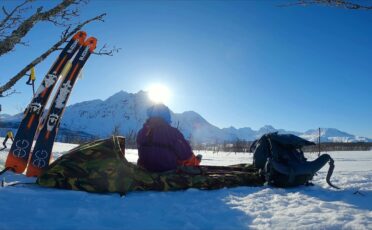 “Lopulta uskon, että etsimäni koti oli itsessäni”, Karen totesi hiihtäessämme laakson pohjalla aamuauringon heijastaessa kultaisia sävyjä ympärillämme olevien valtavien vuorten seiniin.